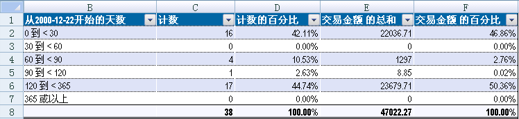 您正在处理应收帐款表,您需要找出每个客户每个帐龄分析周期的交易总数。为此,您使用到期日期列对数据进行账龄分析,并且按客户 ID 对周期进行分组。然后,您小计交易金额列。