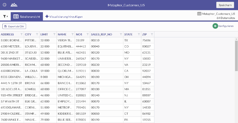 Die Seite „Interpretationen und Visualisierungen“ enthält Tabellendaten, die Sie filtern können und für die Sie Datenvisualisierungen generieren können. Um auf „Interpretationen und Visualisierungen“ zuzugreifen, navigieren Sie in die Datentabellen eines Ordner und öffnen Sie eine Visualisierung. Weitere Informationen finden Sie unter Ergebnisdaten interpretieren.
