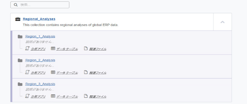 リンクされているコレクション名とフォルダー名を使ってコンテンツにドリルダウンすることも、あるいは[検索]フィールドを使って特定の項目を検索することもできます。