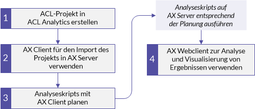 Analytics Exchange ist eine Plattform, die Sie zur Erweiterung der Funktionalität von ACL Analytics in einer sicheren, schnellen und automatisierten Server-Umgebung einsetzen können. Mit Analytics Exchange können Sie ACL-Analytics-Projekte auf den Server importieren und Ihre Analysen planmäßig und wiederholt ausführen.