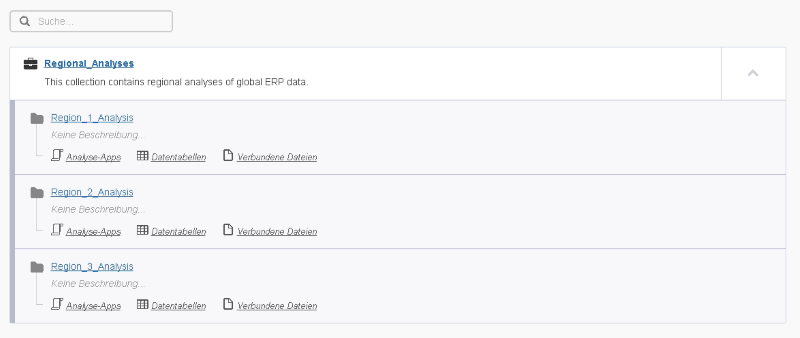 Führen Sie mit den verlinkten Sammlungs- und Ordnernamen einen Drilldown in Ihren Inhalt durch, oder verwenden Sie das Feld Suchen, um bestimmte Elemente zu finden.