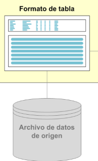 Las tablas se componen de dos partes: el formato de la tabla que describe los datos y el archivo de datos de origen subyacente que contiene los datos.