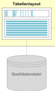Tabellen bestehen aus zwei Teilen: dem Tabellenlayout mit einer Beschreibung der Daten und der zugrunde liegenden Quelldatendatei, die die Daten enthält.