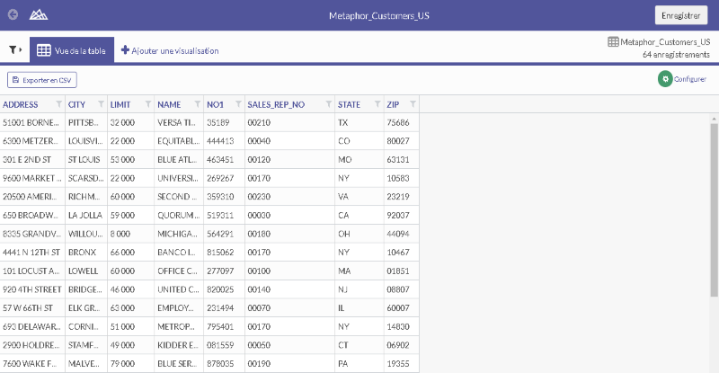 La page des interprétations et des visualisations contient des données de table que vous pouvez filtrer et pour lesquelles vous pouvez générer des visualisations de données. Pour accéder aux interprétations et aux visualisations, accédez aux tables de données d'un dossier et ouvrez une visualisation Pour plus d'informations, consultez la section Interpréter les données des résultats.