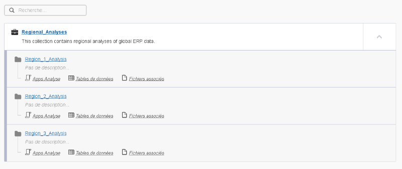 Utilisez les noms de collections et de dossiers liés pour explorer votre contenu ou bien utilisez le champ Rechercher pour rechercher des éléments spécifiques.