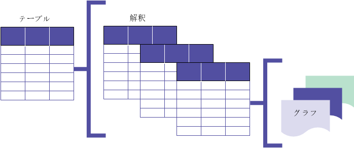 解釈は、コレクションでのテーブルに基づいた、フィルター、視覚化、および統計を集めたコレクションです。これらを使用して、結果を解釈、視覚化し、データに隠れた事実と洞察をより深く理解します。