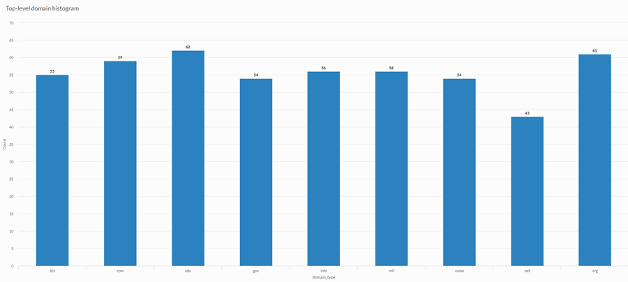 あなたは、顧客の Web サイトの分析を行っていますが、サイトのコレクションに使用される上位のドメインの頻度を表示することを願っています。そのためには、テーブルに各一意の上位のドメイン値の数を表示するヒストグラムを使用します。