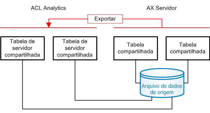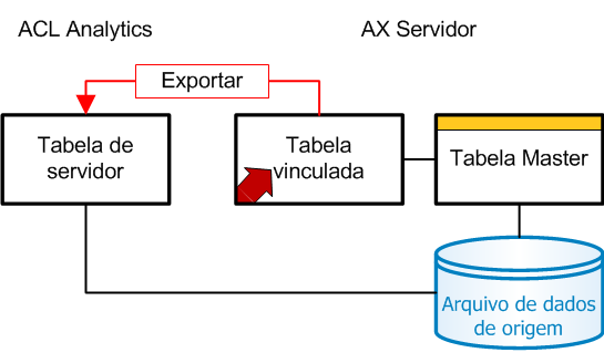 Uma tabela de servidor é um layout de tabela local no ACL Analytics com um arquivo de origem de dados no Servidor AX. O layout da tabela conecta-se ao arquivo de dados por meio de um perfil no servidor do ACL Analytics.