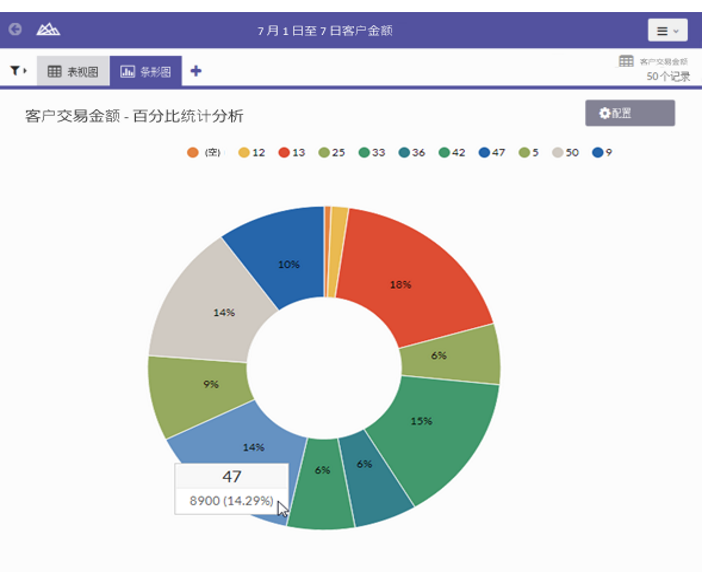 饼图将类别显示为整体的比例或百分比。使用饼图可显示类别数据的构成,每个段都与其表示的数量成正比。