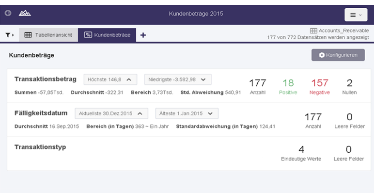 | Negative | Die Anzahl der negativen Werte des Felds, die in rot angezeigt werden | |