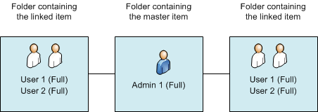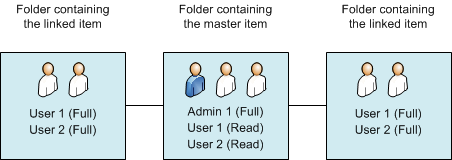 Users also need permissions for the parent collection or collections for both the linked item and master item folders. If the user does not have permissions for the folder containing the master item, or its parent collection, the linked item appears as a broken link and is not viewable or editable.