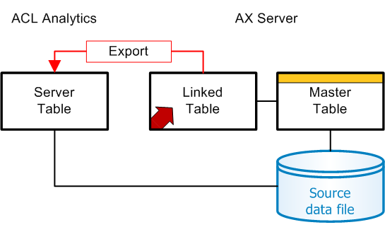 When you export any table type from AX Server, you can leave the source data file on AX Server and create a server table. The content of server tables dynamically updates any time the data file is updated. When you create a server table, the result is the same whether you export a standalone, master, or linked table.