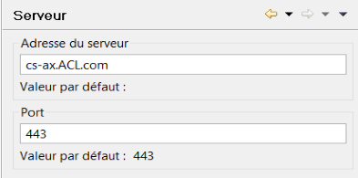La boîte de dialogue Options ne s'affiche que si vous n'avez pas entrer l'adresse serveur d'AX Serveur pendant l'installation d'AX Client. Dans la boîte de dialogue, conservez la valeur par défaut 443 comme numéro de port sauf indication contraire.