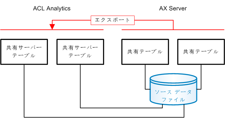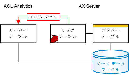 サーバー テーブルは、AX Server 上にソース データ ファイルがある、ローカルの ACL Analytics 内のテーブル レイアウトです。テーブル レイアウトは ACL Analytics サーバー プロファイルを使ってデータ ファイルに接続しています。