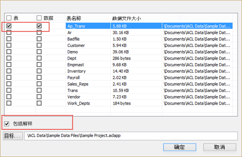 默认情况下,样例数据项目被安装在您的本地文件系统上的 C:\Users\用户名\Documents\ACL Data\Sample Data Files。