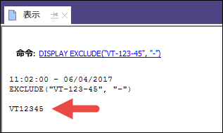 EXCLUDE( ) の例では、VT を除外する文字に追加する場合、数値のみを含む出力にしてください。