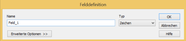 Das Dialogfeld Felddefinition wird geöffnet.