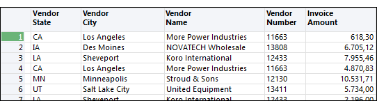 Gibt die Formatierung einer einzelnen numerischen Spalte in einer einzelnen Ansicht an Wenn Sie mehr als eine Ansicht einer Tabelle haben, können Sie dieselbe Spalte in verschiedenen Ansichten unterschiedlich formatieren. In einer Ansicht, die Sie für gedruckte Berichte verwenden, könnten Sie beispielsweise eine Spalte mit Dollar-Zeichen anzeigen und diese Dollar-Zeichen in einer Ansicht für eine Analyse weglassen. |