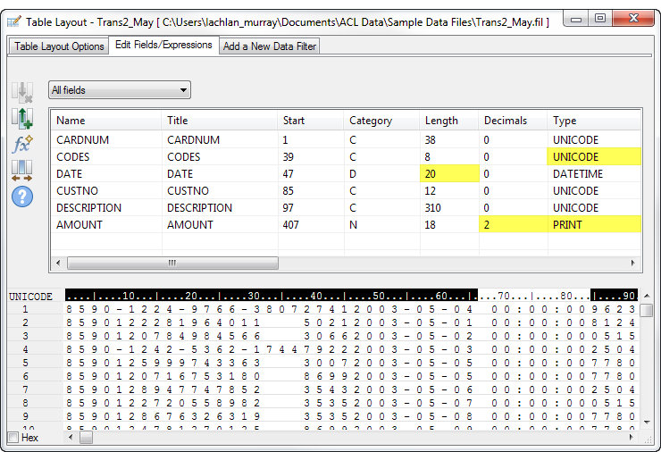 - Navigate to C:\Users\user_account_name\Documents\ACL Data\Sample Data Files and double-click Sample Project.ACL.