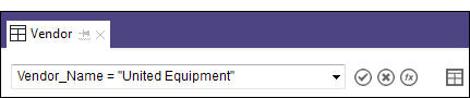 El ejemplo anterior aísla todos los registros que contienen el nombre “United Equipment” en el campo Nombre_proveedor.