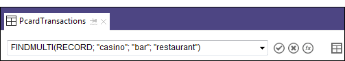 El ejemplo anterior usa la función FINDMULTI( ) para aislar todos los registros que contienen al menos uno de los términos de búsqueda en cualquier lugar del registro.