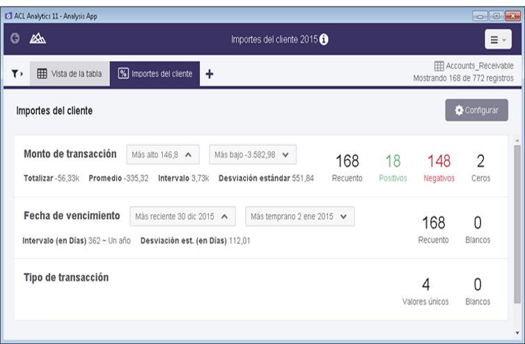 | Positivos | La cantidad de valores positivos en el campo; se muestra en verde | |