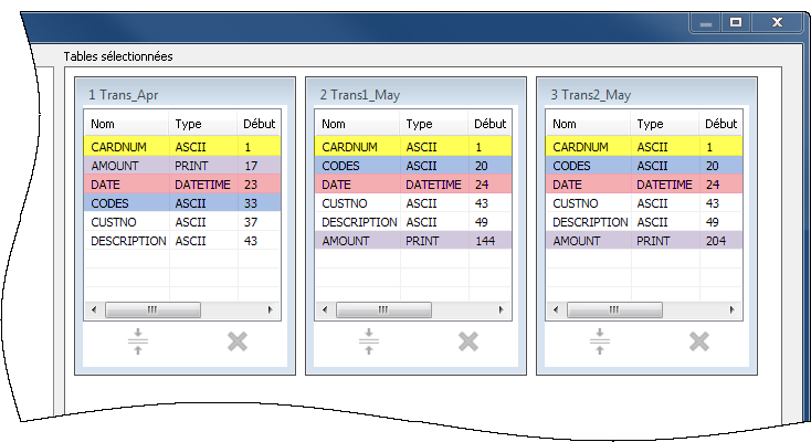 Dans les deux autres tables, le champ CARDNUM a un type de données ASCII. La plupart du temps, associer des données nécessite que les champs en correspondance dans les tables associées aient le même type de données.