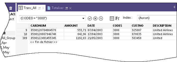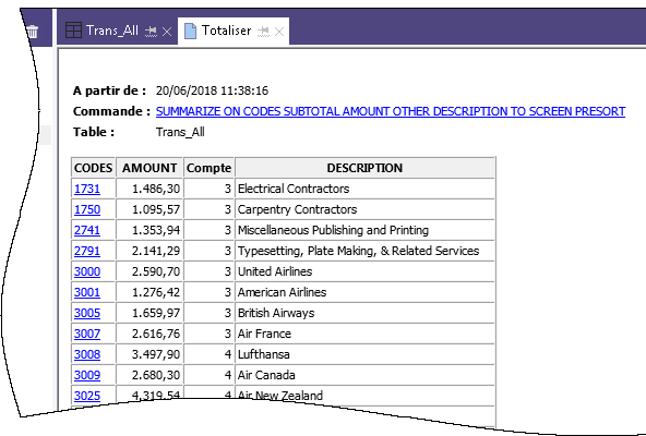 La commande de totalisation est à nouveau exécutée sur la table Trans_All et crée la table Trans_All_Grouped_2, qui reproduit la première table de résultats que vous aviez manuellement créée.