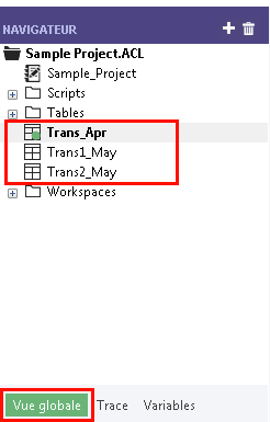 ACLScript est le langage de commande qui forme la base d'Analytics. Les scripts sont stockés dans des projets Analytics. Les scripts individuels s'affichent dans le Navigateur, et sont précédés par l'icône de script
