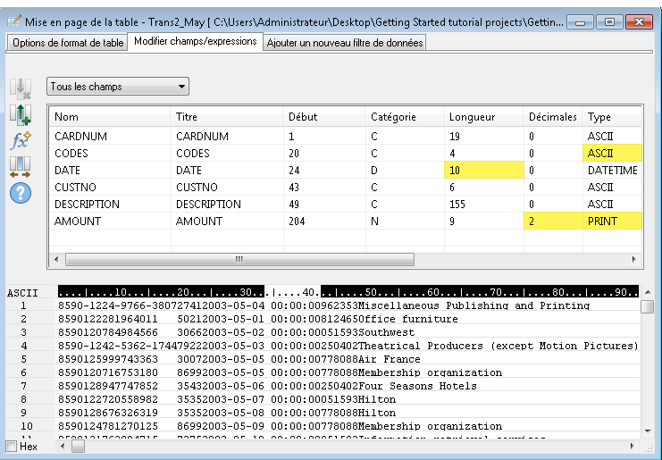 - Sous Types de données valides, double-cliquez sur ASCII afin de mettre à jour le type de données du champ.