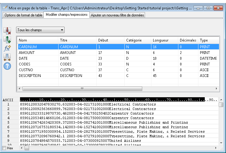 Chaque table présente dans un projet Analytics a un format de table. Le format de table contient des métadonnées comme des noms de champs, leur position de départ, leur longueur, le type de données qu'ils contiennent, etc.