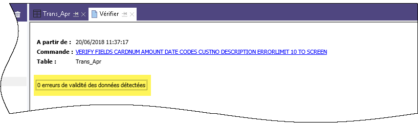 COMMENT *** Édition non Unicode *** Ce script effectue toutes les actions que vous avez effectuées manuellement dans le tutoriel « Premiers pas avec ACL Analytics ». END COMMENT Vous permet de remplacer les tables sans nécessiter de confirmation utilisateur. SET SAFETY OFF COMMENT Importe les trois feuilles de calcul Excel. IMPORT EXCEL TO Trans1_May_s "C:\Users\nom_compte_utilisateur\Documents\ACL Data\Exemples de fichiers de données\Trans1_May_s.fil" FROM "Trans_May.xls" TABLE "Trans1_May$" KEEPTITLE FIELD "CARDNUM" C WID 19 AS "" FIELD "CODES" N WID 4 DEC 0 AS "" FIELD "DATE" D WID 19 PIC "AAAA-MM-JJ hh:mm:ss" AS "" FIELD "CUSTNO" C WID 6 AS "" FIELD "DESCRIPTION" C WID 95 AS "" FIELD "AMOUNT" C WID 9 AS "" IMPORT EXCEL TO Trans2_May_s "C:\Users\nom_compte_utilisateur\Documents\ACL Data\Exemples de fichiers de données\Trans2_May_s.fil" FROM "Trans_May.xls" TABLE "Trans2_May$" KEEPTITLE FIELD "CARDNUM" C WID 19 AS "" FIELD "CODES" N WID 4 DEC 0 AS "" FIELD "DATE" D WID 19 PIC "AAAA-MM-JJ hh:mm:ss" AS "" FIELD "CUSTNO" C WID 6 AS "" FIELD "DESCRIPTION" C WID 155 AS "" FIELD "AMOUNT" C WID 9 AS "" IMPORT EXCEL TO Trans_Apr_s "C:\Users\nom_compte_utilisateur\Documents\ACL Data\Exemples de fichiers de données\Trans_Apr_s.fil" FROM "Trans_April.xls" TABLE "Trans_Apr$" KEEPTITLE FIELD "CARDNUM" N WID 16 DEC 0 AS "" FIELD "AMOUNT" N WID 6 DEC 2 AS "" FIELD "DATE" D WID 10 PIC "AAAA-MM-JJ" AS "" FIELD "CODES" N WID 4 DEC 0 AS "" FIELD "CUSTNO" C WID 6 AS "" FIELD "DESCRIPTION" C WID 45 AS "" COMMENT Ajuste les formats de table des trois nouvelles tables Analytics. OPEN Trans_Apr_s DELETE FIELD CARDNUM OK DEFINE FIELD CARDNUM ASCII 1 16 WIDTH 19 DELETE FIELD CODES OK DEFINE FIELD CODES ASCII 33 4 WIDTH 7 OPEN Trans1_May_s DELETE FIELD CODES OK DEFINE FIELD CODES ASCII 20 4 WIDTH 7 DELETE FIELD AMOUNT OK DEFINE FIELD AMOUNT PRINT 144 9 2 WIDTH 9 DELETE FIELD DATE OK DEFINE FIELD DATE DATETIME 24 10 PICTURE "AAAA-MM-JJ" WIDTH 27 OPEN Trans2_May_s DELETE FIELD CODES OK DEFINE FIELD CODES ASCII 20 4 WIDTH 7 DELETE FIELD AMOUNT OK DEFINE FIELD AMOUNT PRINT 204 9 2 WIDTH 9 DELETE FIELD DATE OK DEFINE FIELD DATE DATETIME 24 10 PICTURE "AAAA-MM-JJ" WIDTH 27 COMMENT Vérifie les données importées et fournit des notifications à l'utilisateur. OPEN Trans_Apr_s VERIFY FIELDS CARDNUM AMOUNT DATE CODES CUSTNO DESCRIPTION ERRORLIMIT 10 IF WRITE1=0 DIALOG (DIALOG TITLE "Boîte de dialogue utilisateur" WIDTH 490 HEIGHT 100 ) (BUTTONSET TITLE "&OK;&Annuler" AT 360 12 DEFAULT 1 ) (TEXT TITLE "Table Trans_Apr_s : 0 erreurs de validité des données détectées" AT 12 28 ) IF WRITE1>0 DIALOG (DIALOG TITLE "Boîte de dialogue utilisateur" WIDTH 490 HEIGHT 100 ) (BUTTONSET TITLE "&OK;&Annuler" AT 360 12 DEFAULT 1 ) (TEXT TITLE "Table Trans_Apr_s : %WRITE1% erreurs de validité des données détectées" AT 12 28 ) OPEN Trans1_May_s VERIFY FIELDS CARDNUM CODES DATE CUSTNO DESCRIPTION AMOUNT ERRORLIMIT 10 IF WRITE1=0 DIALOG (DIALOG TITLE "Boîte de dialogue utilisateur" WIDTH 490 HEIGHT 100 ) (BUTTONSET TITLE "&OK;&Annuler" AT 360 12 DEFAULT 1 ) (TEXT TITLE "Table Trans1_May_s : 0 erreurs de validité des données détectées" AT 12 28 ) IF WRITE1>0 DIALOG (DIALOG TITLE "Boîte de dialogue utilisateur" WIDTH 490 HEIGHT 100 ) (BUTTONSET TITLE "&OK;&Annuler" AT 360 12 DEFAULT 1 ) (TEXT TITLE "Table Trans1_May_s : %WRITE1% erreurs de validité des données détectées" AT 12 28 ) OPEN Trans2_May_s VERIFY FIELDS CARDNUM CODES DATE CUSTNO DESCRIPTION AMOUNT ERRORLIMIT 10 IF WRITE1=0 DIALOG (DIALOG TITLE "Boîte de dialogue utilisateur" WIDTH 490 HEIGHT 100 ) (BUTTONSET TITLE "&OK;&Annuler" AT 360 12 DEFAULT 1 ) (TEXT TITLE "Table Trans2_May_s : 0 erreurs de validité des données détectées" AT 12 28 ) IF WRITE1>0 DIALOG (DIALOG TITLE "Boîte de dialogue utilisateur" WIDTH 490 HEIGHT 100 ) (BUTTONSET TITLE "&OK;&Annuler" AT 360 12 DEFAULT 1 ) (TEXT TITLE "Table Trans2_May_s : %WRITE1% erreurs de validité des données détectées" AT 12 28 ) COMMENT Vérifie la table Badfile et fournit une notification à l'utilisateur. OPEN Badfile VERIFY FIELDS InvoiceNo Prodno Price OrderQty ShipQty Total ERRORLIMIT 10 IF WRITE1=0 DIALOG (DIALOG TITLE "Boîte de dialogue utilisateur" WIDTH 490 HEIGHT 100 ) (BUTTONSET TITLE "&OK;&Annuler" AT 360 12 DEFAULT 1 ) (TEXT TITLE "Table Badfile : 0 erreurs de validité des données détectées" AT 12 28 ) IF WRITE1>0 DIALOG (DIALOG TITLE "Boîte de dialogue utilisateur" WIDTH 490 HEIGHT 100 ) (BUTTONSET TITLE "&OK;&Annuler" AT 360 12 DEFAULT 1 ) (TEXT TITLE "Table Badfile : %WRITE1% erreurs de validité des données détectées" AT 12 28 ) CLOSE COMMENT Concatène les trois nouvelles tables Analytics dans une seule table combinée. APPEND Trans_Apr_s Trans1_May_s Trans2_May_s TO "Trans_All_s" OPEN DIALOG (DIALOG TITLE "Boîte de dialogue utilisateur" WIDTH 630 HEIGHT 100 ) (BUTTONSET TITLE "&OK;&Annuler" AT 500 12 DEFAULT 1 ) (TEXT TITLE "La table de transactions combinée (Trans_All_s) contient %WRITE1% enregistrements" AT 12 28 ) COMMENT Regroupe la table combinée par code de catégories de marchands. SUMMARIZE ON CODES SUBTOTAL AMOUNT OTHER DESCRIPTION TO "Trans_All_Grouped_s.FIL" OPEN PRESORT STATISTICS DIALOG (DIALOG TITLE "Boîte de dialogue utilisateur" WIDTH 700 HEIGHT 100 ) (BUTTONSET TITLE "&OK;&Annuler" AT 570 12 DEFAULT 1 ) (TEXT TITLE "La table de transactions groupée (Trans_All_Grouped_s) contient %WRITE1% codes de catégories de marchands" AT 12 28 WIDTH 550 ) COMMENT Filtre la table combinée pour afficher uniquement les transactions interdites. OPEN Trans_All_s DEFINE FIELD f_Prohibited_codes COMPUTED MATCH(CODES; "5094"; "5993"; "7273"; "7295"; "7297"; "7994"; "7995"; "7996"; "8641") SET FILTER TO f_Prohibited_codes COMMENT Message de bon achèvement. DIALOG (DIALOG TITLE "Boîte de dialogue utilisateur" WIDTH 490 HEIGHT 100 ) (BUTTONSET TITLE "&OK;&Annuler" AT 360 12 DEFAULT 1 ) (TEXT TITLE "Script achevé avec succès" AT 12 28 ) COMMENT Une confirmation utilisate
