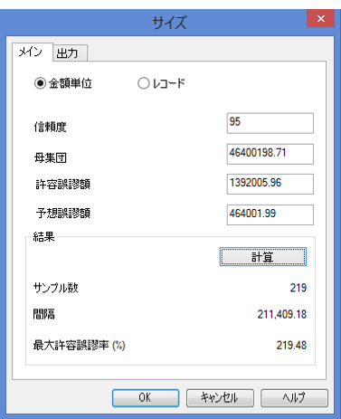 4. サンプリング > レコード/金額単位サンプリング > サイズの計算]を選択します。