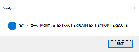 在脚本中指定命令时,您可以缩略它们的名称。 您必须包括命令名称中足够多的前导字符,以在所有 Analytics 命令中唯一地标识该命令。