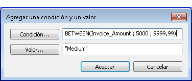 . - En el cuadro de diálogo Agregar una condición y un valor, haga lo siguiente y después haga clic en Aceptar: