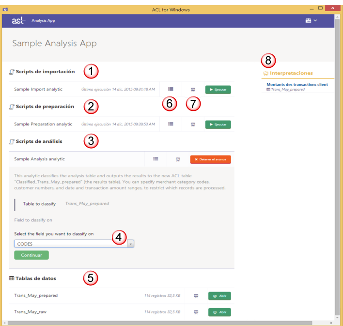 | 5 | Tablas de datos | Enumera todas las tablas de datos actualmente guardadas con la aplicación de análisis |