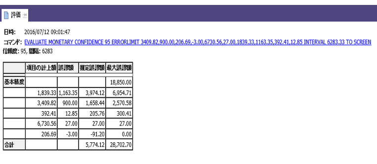 | 合計 | 母集団全体または勘定残高の最大尤度金額、および上限誤謬金額。 |