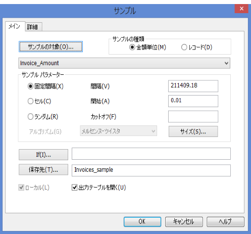 - [サンプリング > レコード/金額単位サンプリング > サンプル]を選択します。