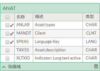 与添加到暂存区域的 SAP 表中的域名称一起显示的类型是 SAP 数据类型。 其他 Analytics 连接器显示 Analytics 数据类型。 导入后,SAP 数据类型被转换为 Analytics 数据类型。