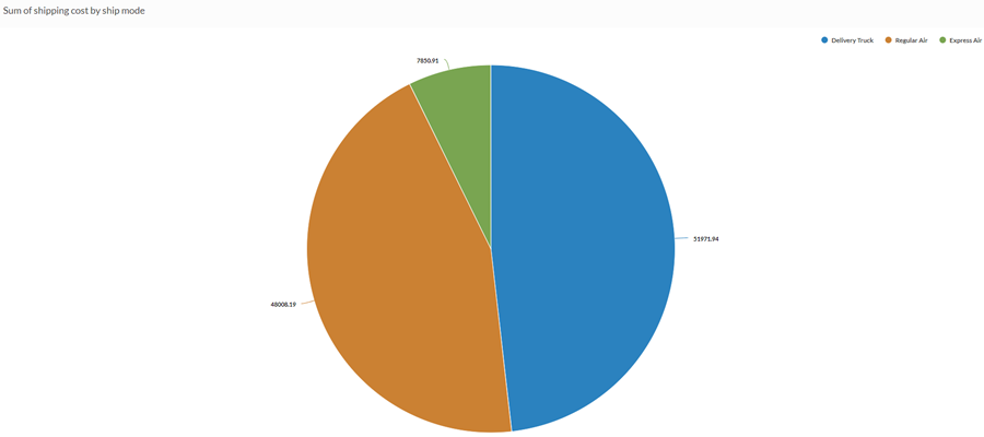 您需要确定哪些运输方式在您的公司的运输成本总金额中占最大比例。 使用饼图,显示每种方式占总成本的百分比: