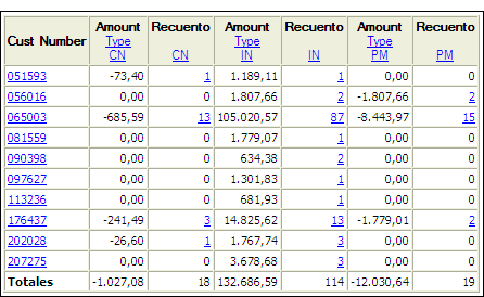 - con la generación de tablas cruzadas por número de cliente y tipo de transacción en una tabla de cuentas por cobrar