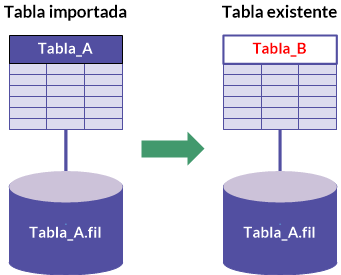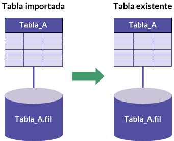 Mismo nombre: tabla nueva, formato de tabla existente, archivo de datos de origen existente