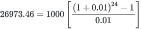 FVANNUITY( ) 26973.46 を返す: FVANNUITY(0.01, 24, 1000)