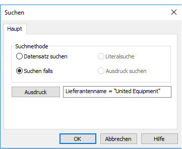 | Funktionsbereich | Datensatz suchen / Suchen falls | Literalsuche | Ausdruck suchen |