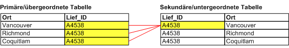 Beispiel 1: Zwei Schlüsselfelder in der sekundären oder untergeordneten Tabelle