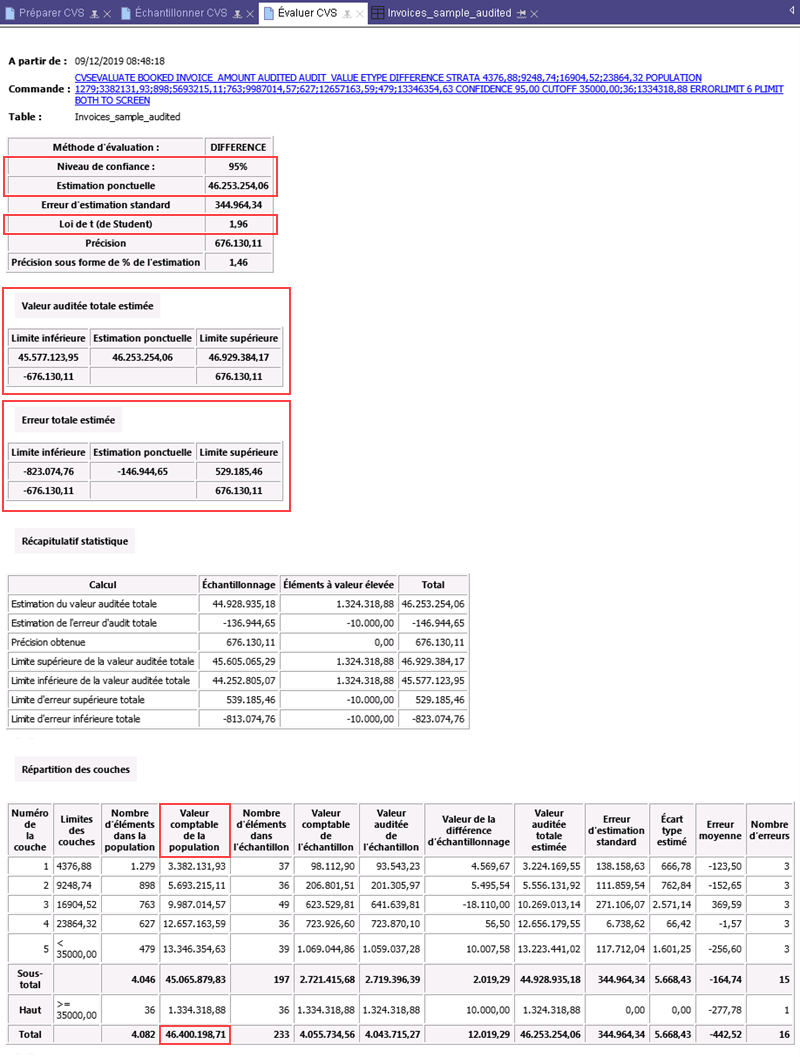 - calculer les limites supérieures et inférieures sur la valeur d'audit totale estimée et sur le montant des anomalies totales estimées