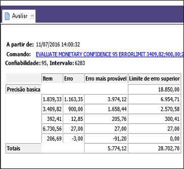 | Caixa de diálogo Avaliar | ||
