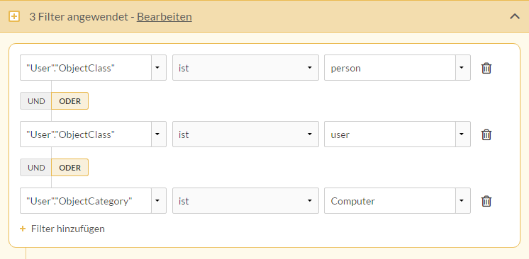 Sie möchten auch eine Beschränkung auf Datensätze vornehmen, deren Objektkategorie das Attribut „Computer“ und nicht „Person“ aufweist.