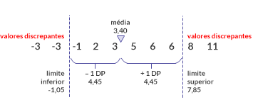 Limites de valores discrepantes ± 3 desvios padrão da média