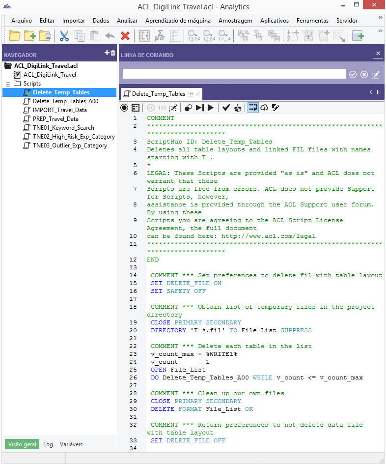 | Crie automaticamente sintaxe do ACLScript a partir do histórico de qualquer tabela do Analytics criada como resultado de um comando ou de uma série de comandos do ACLScript. | |